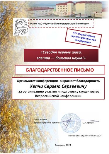 XIV Всероссийская научно-практическая конференция «СЕГОДНЯ ПЕРВЫЕ ШАГИ, ЗАВТРА - БОЛЬШАЯ НАУКА!»
