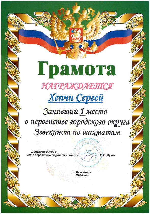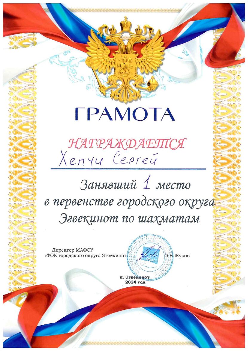 1 место в Первенстве городского округа Эгвекинот по шахматам 14.12.2024