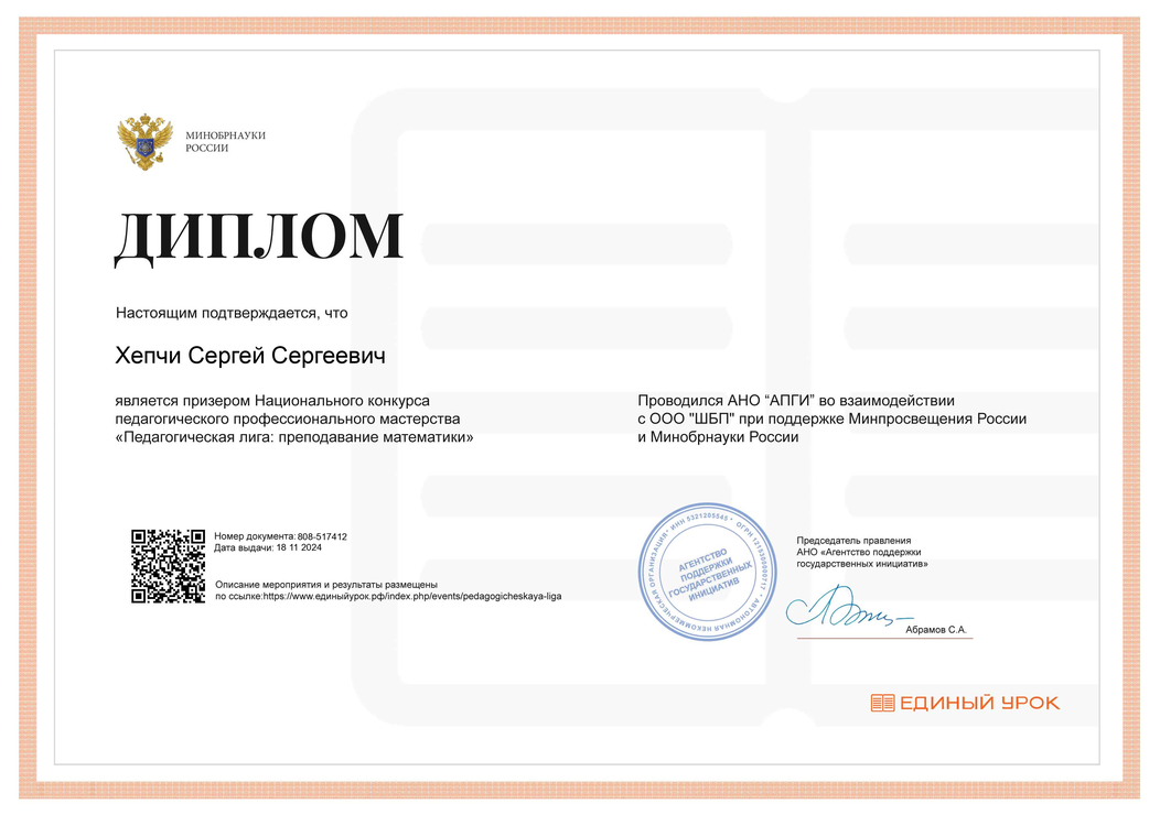 Призер Национального конкурса педагогического мастерства "Педагогическая лига: преподавание математики"