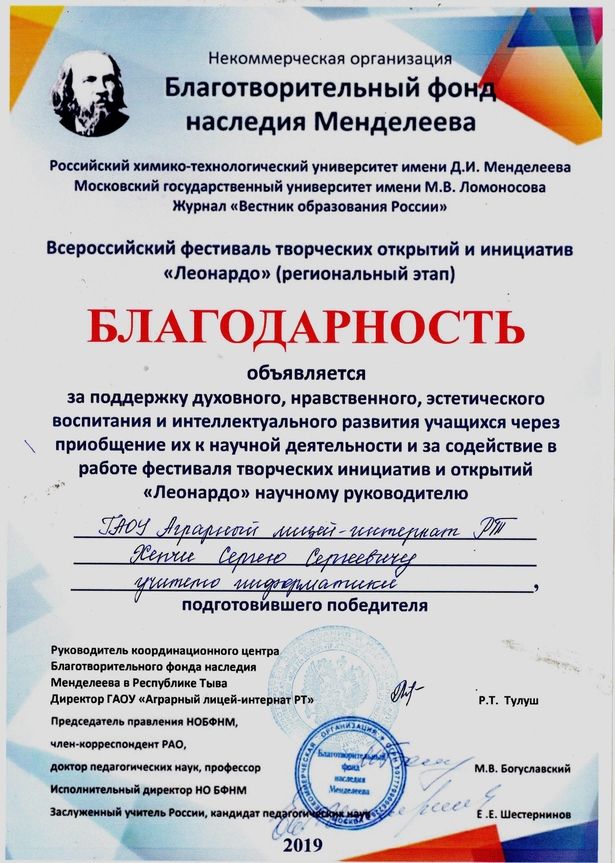 Всероссийский фестиваль творчества открытий и инициатив "Леонардо" - 2019г.