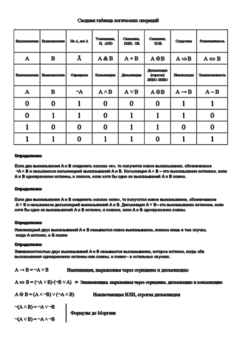 1. Обозначения для логических связок (операций):